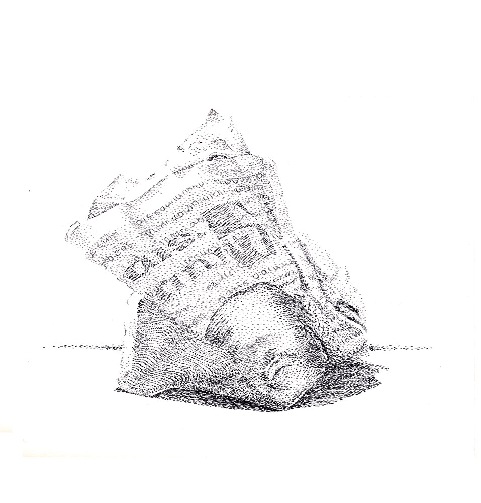 Above : Dollar bill I-V (2015) ink on paper, 29.25 x 42 cm
